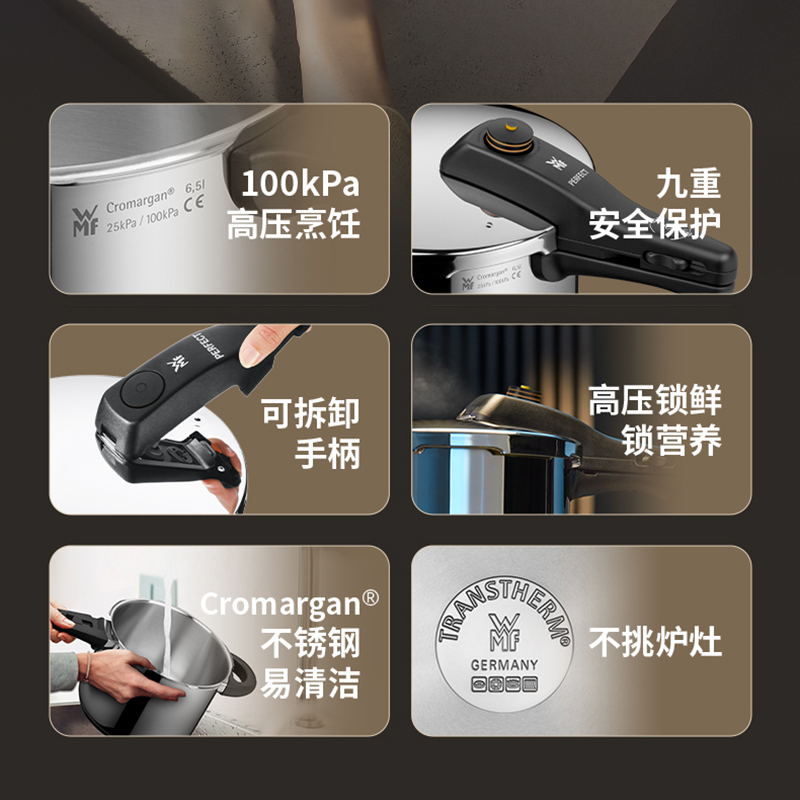 进口压力锅不锈钢高压锅快易锅大容量W WMF德国福腾宝原装 自营