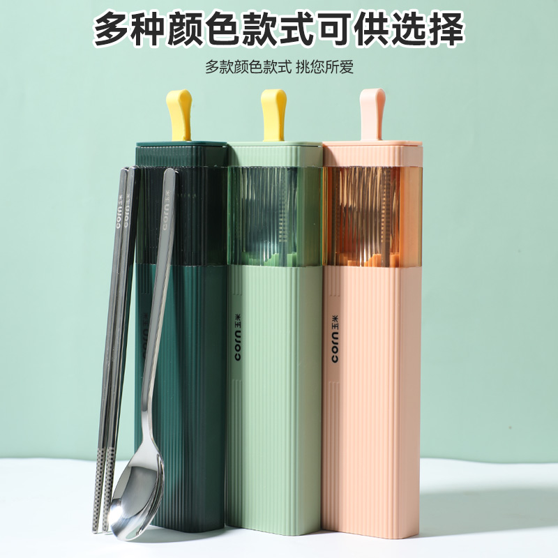 玉米不锈钢筷子勺子套装 小学生餐具外出上班三件套旅行收纳餐盒