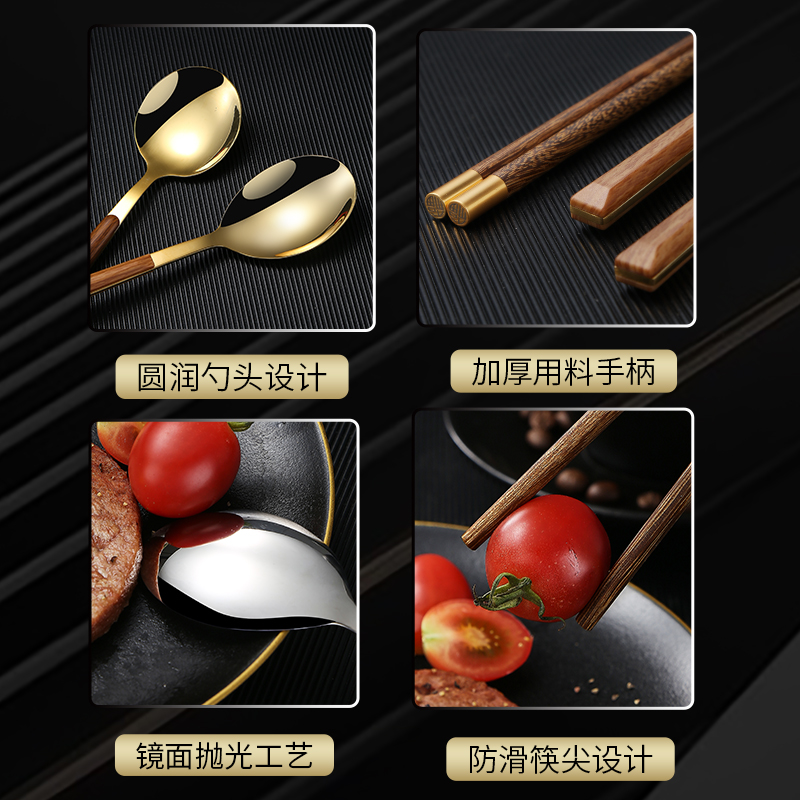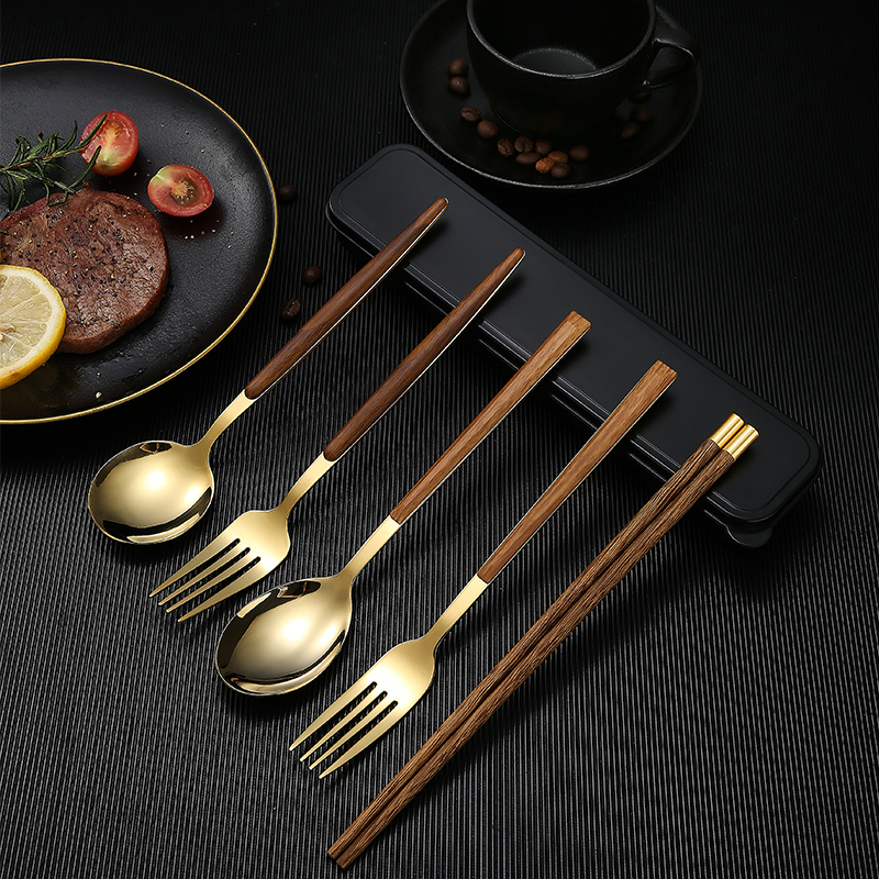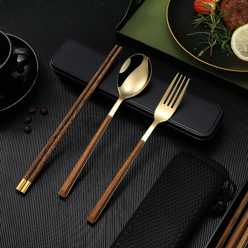 筷子勺子套装 一人一筷便携餐具学生收纳盒叉子单人木质筷子三件套