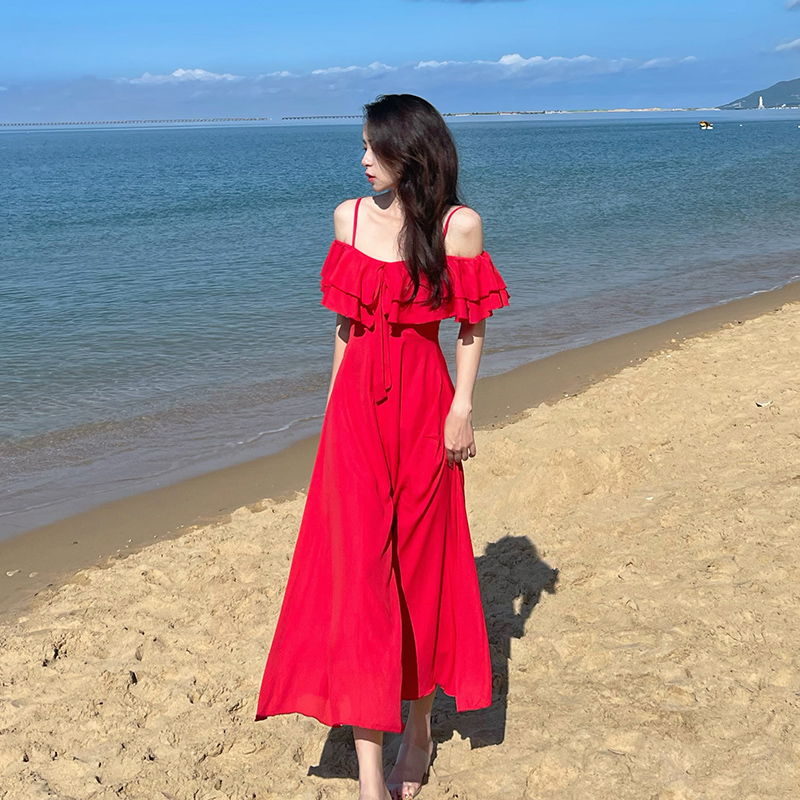 复古高级感荷叶边连衣裙女夏显瘦超仙度假裙 胖mm法式 XZY 欣争艳