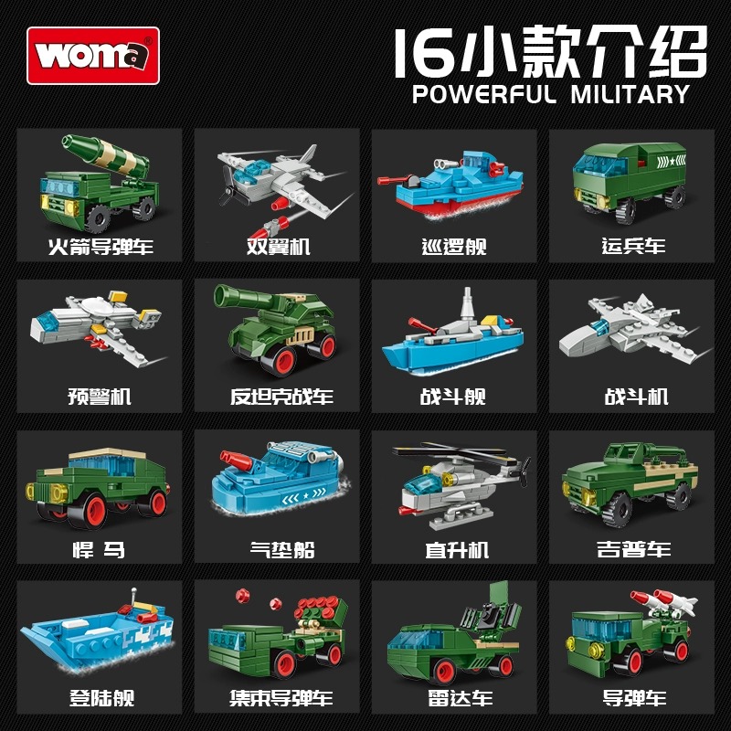 沃马积木枪拼装 儿童玩具男孩益智力动脑拼插军事系列坦克飞机模型