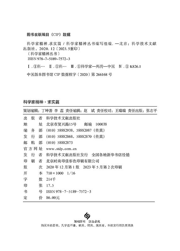 科学技术文献出版 求实篇 社2023年5月重印 科学家精神 全新正版