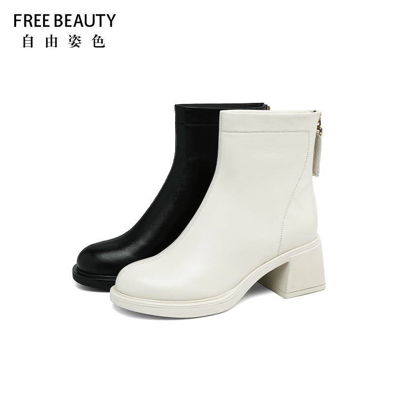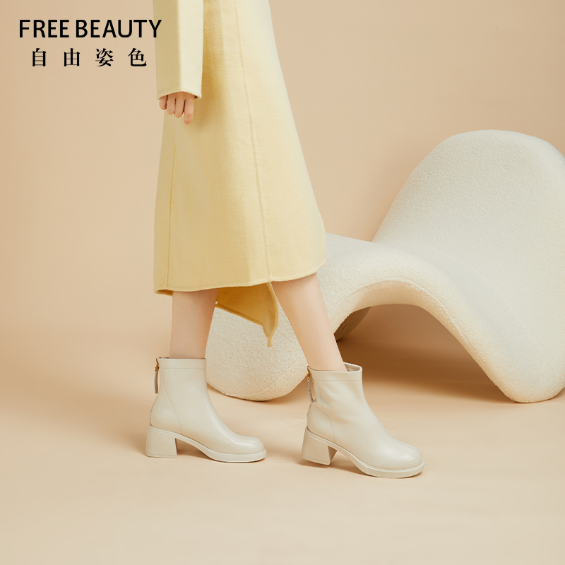 靴复古瘦瘦靴女 粗跟显瘦弹力时装 自由姿色真皮女靴马丁靴冬季 新款
