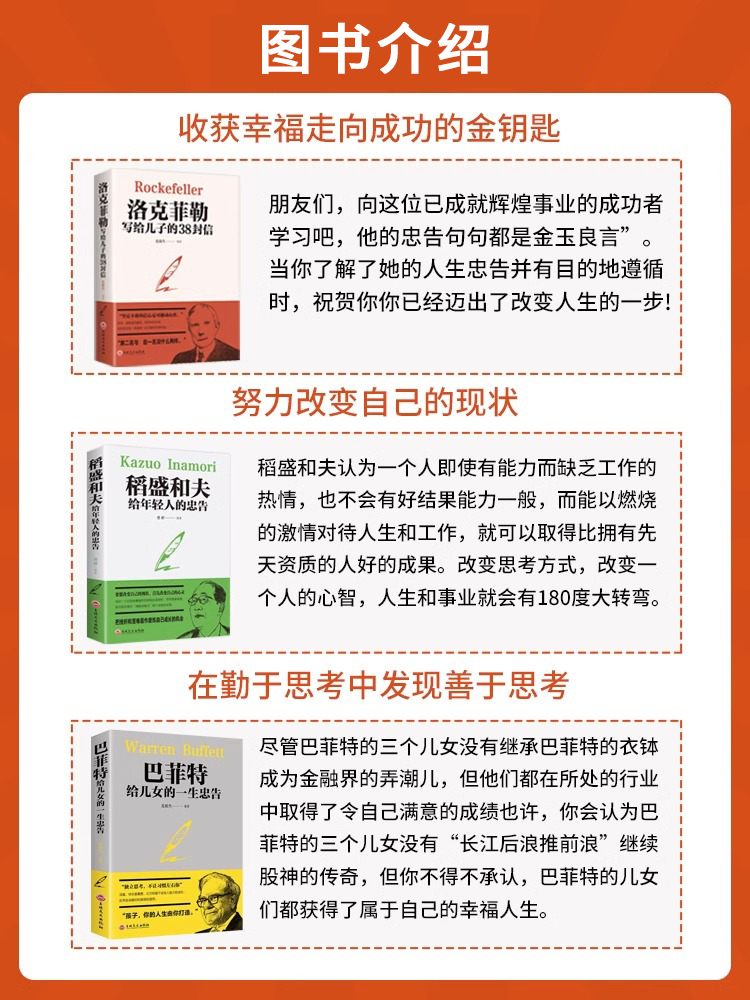 一生忠告稻盛和夫给年轻人 38封信三册巴菲特给儿女 忠告正能量人生成功励志书心机心计职场畅销书籍 洛克菲勒写给儿子 全新正版
