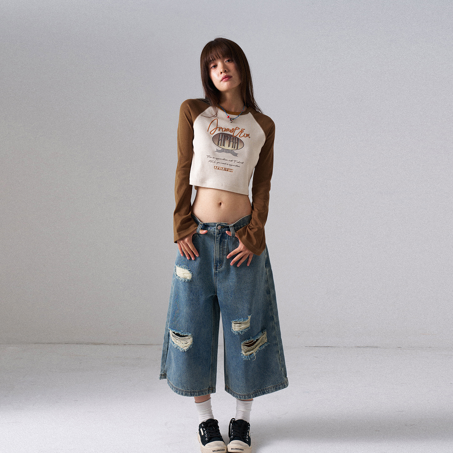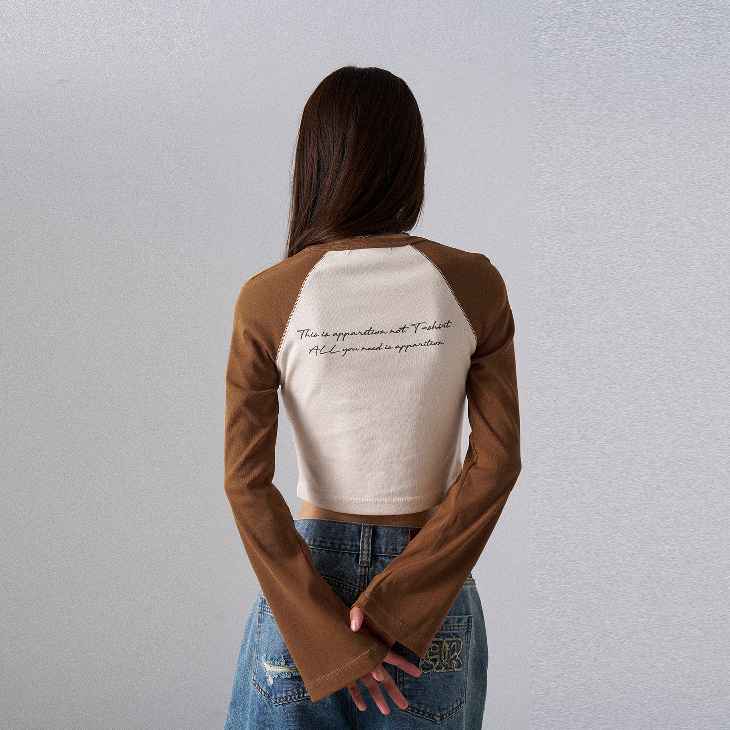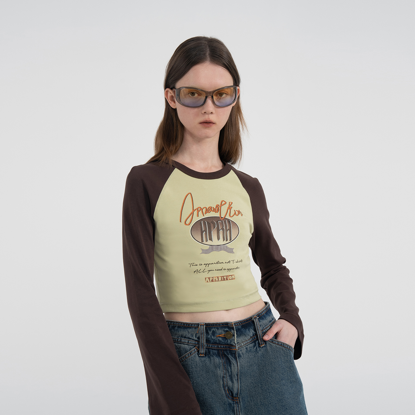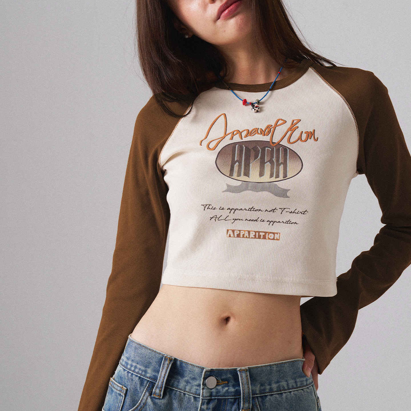 长袖 APPARITION 女短款 撞色插肩袖 T恤 复古字母印花