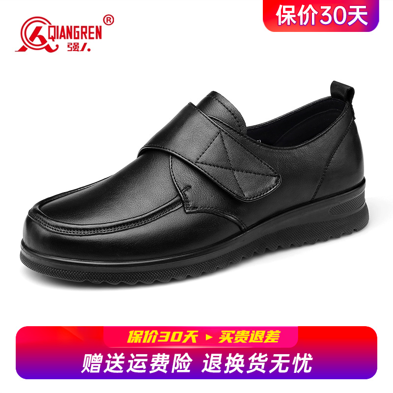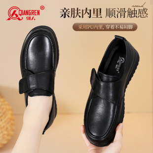 一脚蹬魔术贴中年皮鞋 舒适平底单鞋 女 真皮软底妈妈鞋 强人3515女鞋