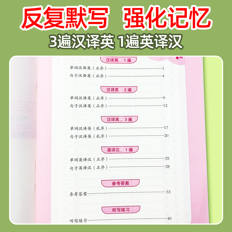 人教小学英语单词默写本PEP版 6年级记忆本练习本册 课本同步描红练字帖三四五六年级上册下册儿童英文26个字母句子速记听写训练3