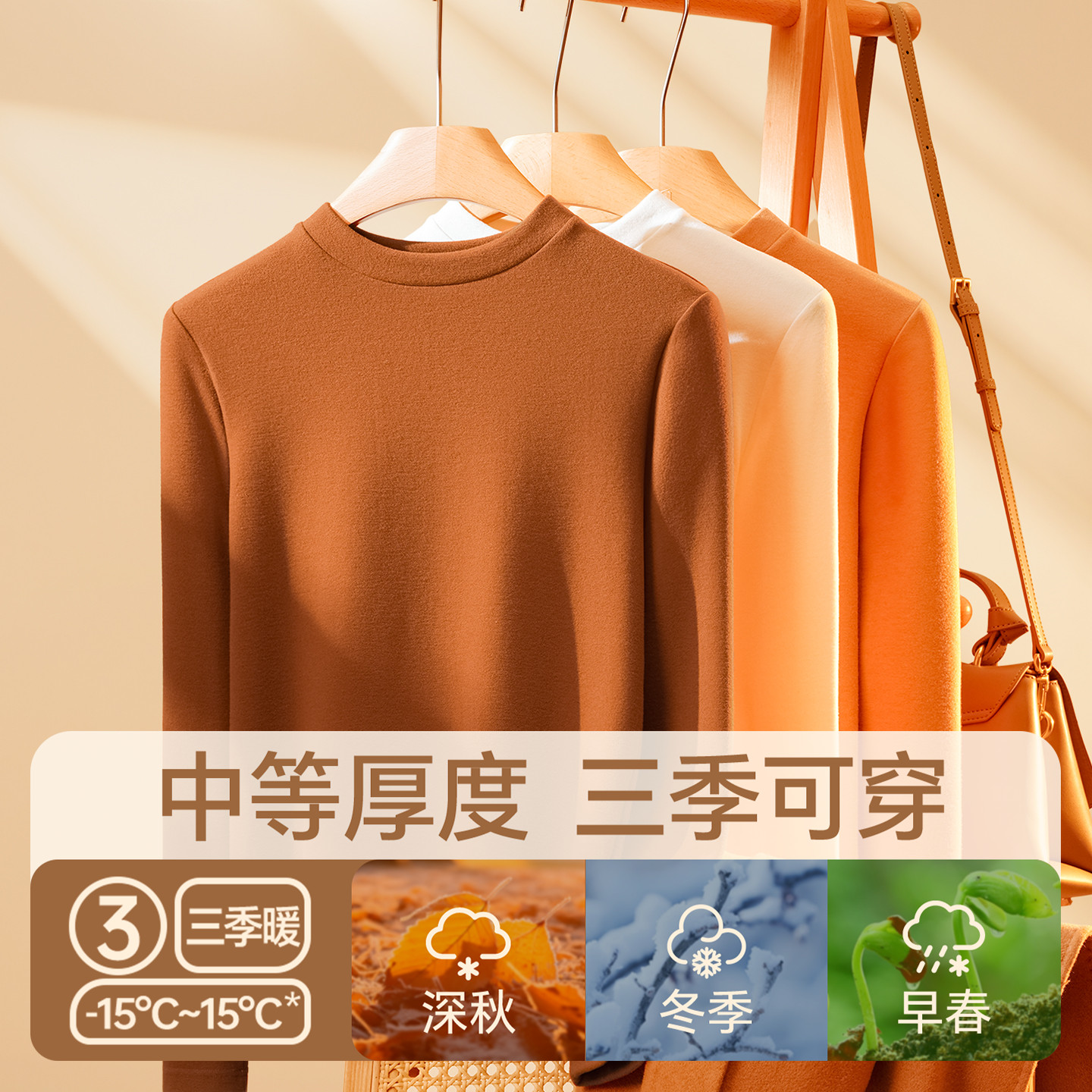 简云蚕丝德绒发热保暖内衣女内搭加绒秋衣单件上衣羊毛打底衫 冬季