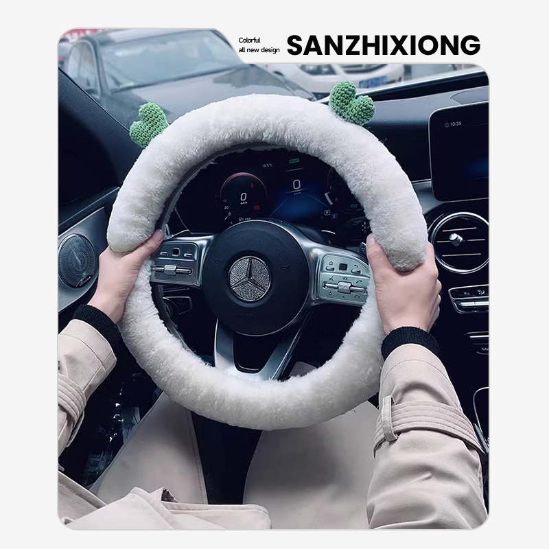 女可爱大众翻毛皮汽车把套 通用保护套25新款 方向盘套冬季 毛绒四季