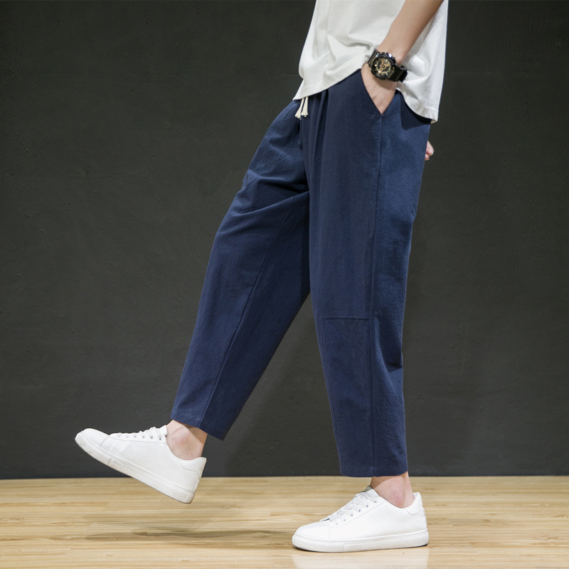 男裤 潮牌宽松灯笼裤 子夏季 日系复古休闲裤 薄 棉麻哈伦裤 亚麻九分裤