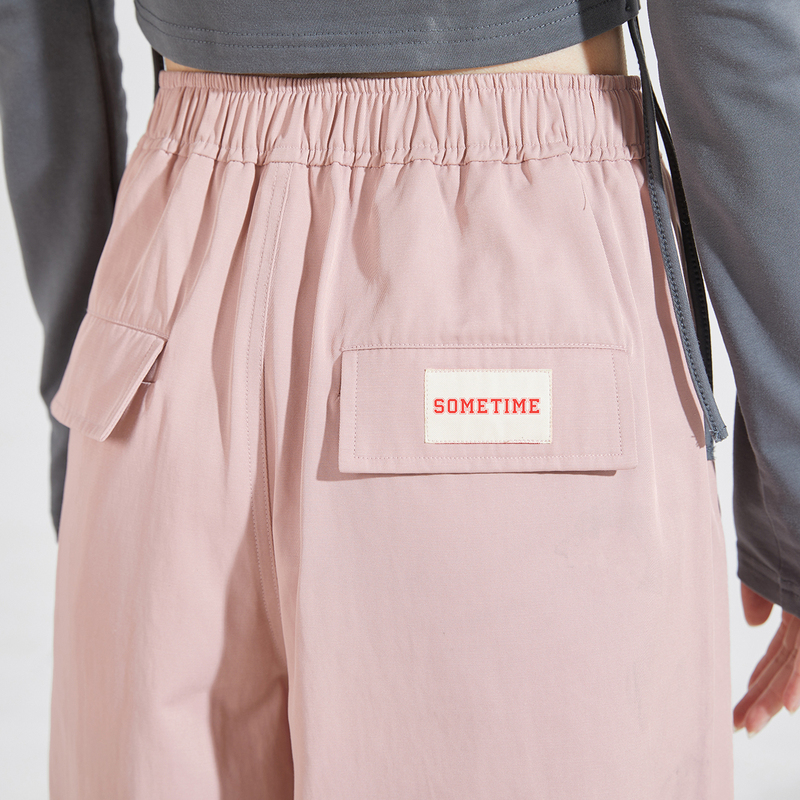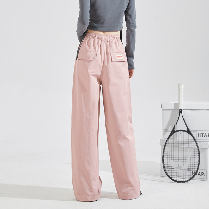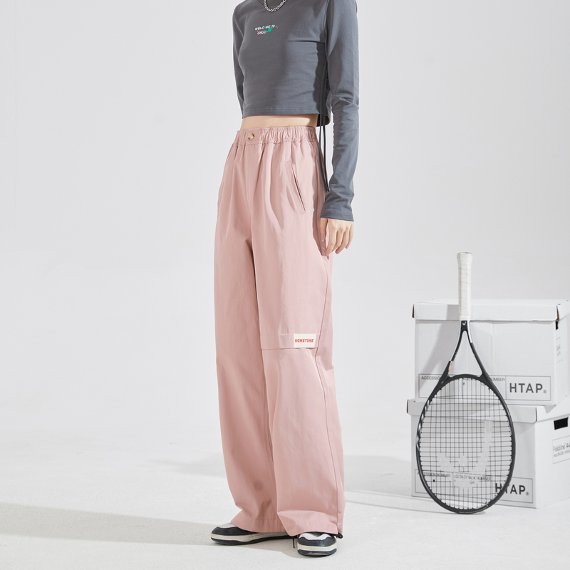 辣妹高腰开叉拖地长裤 唐狮粉色阔腿裤 子运动美式 新休闲裤 女秋季