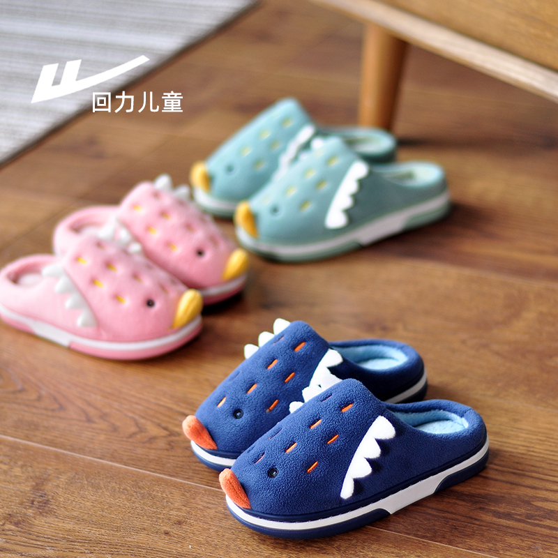 儿童室内家居保暖小男孩宝宝中大童女童毛毛鞋 回力男童棉拖鞋 冬季