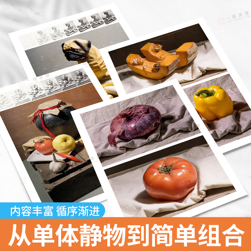 素描静物照片临摹卡16开写生卡组合静物48页实物教材高清临摹画册现场实拍美术生对临用艺考图片卡片对画陶罐衬布水果场景生活用品