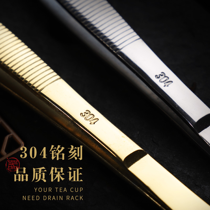 加厚不锈钢304茶夹功夫茶具茶道配件茶杯夹子金属洗杯茶夹子镊子