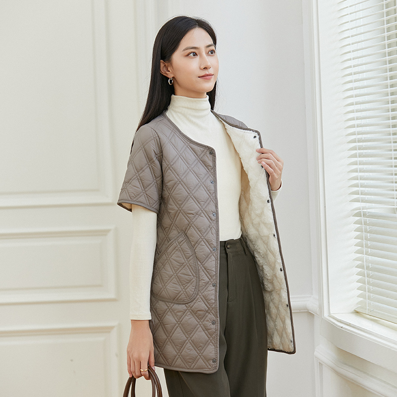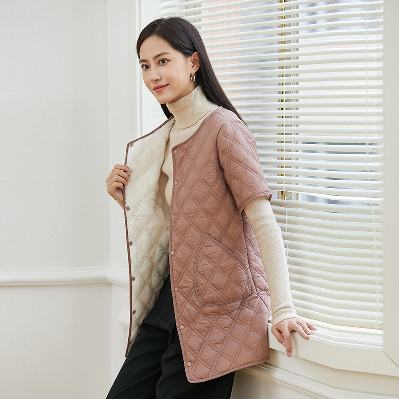 三福棉衣棉服女2025冬季 845249 撞色灯芯绒棉袄菱形格宽松外套女装