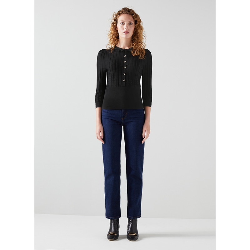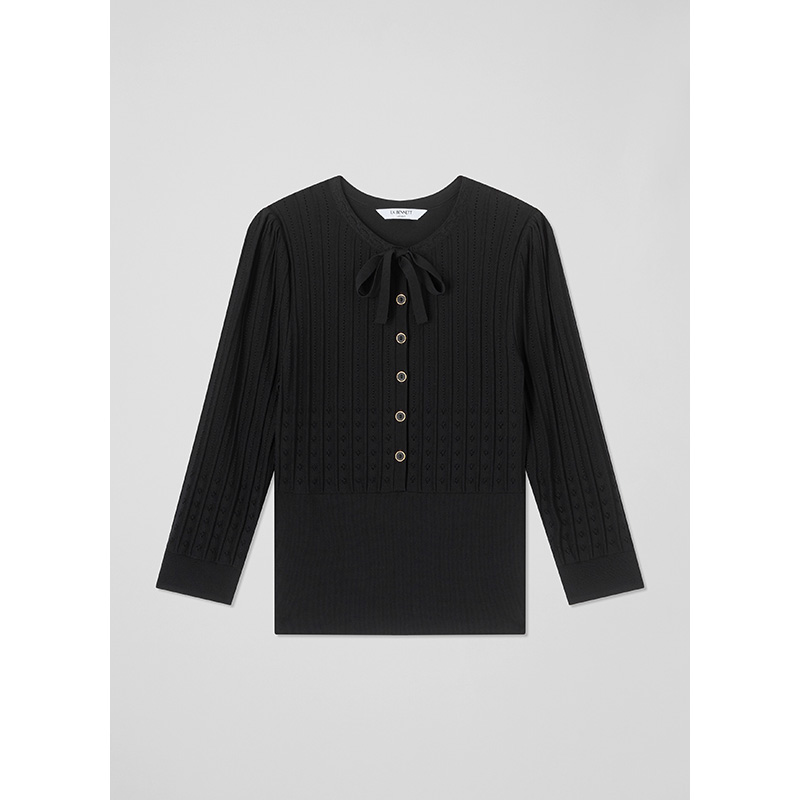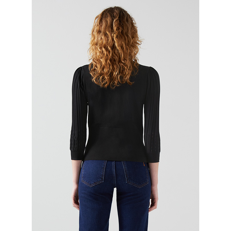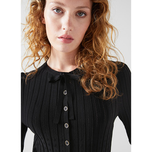 女春季 上衣短款 七分袖 气质法式 通勤 修身 lkbennett黑色针织衫