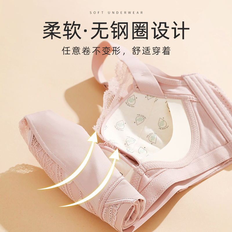 安芝娜大胸显小文胸罩无钢圈上托侧收薄款 内衣女士6338 调整型大码