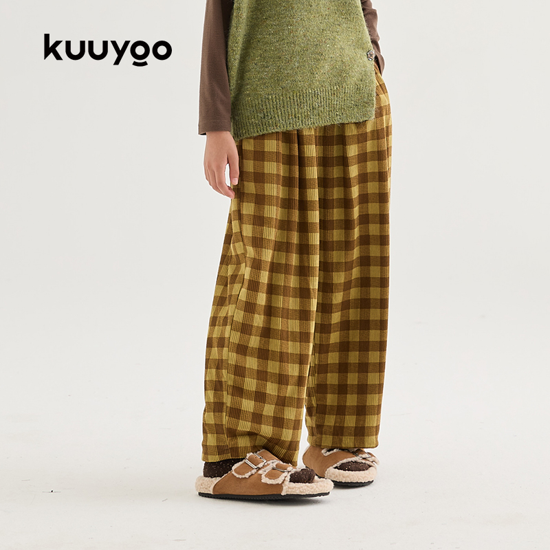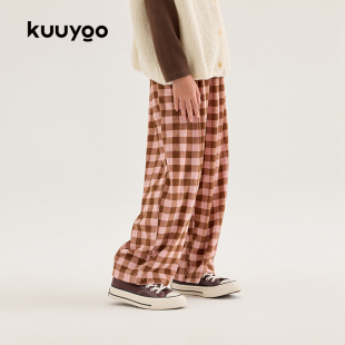 胖mm显瘦遮肉高腰垂感运动裤 大码 新款 女秋季 子 复古格子宽松阔腿裤