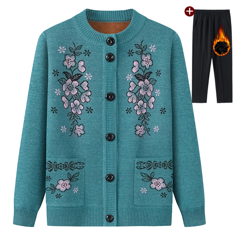 衣服老年针织衫 奶奶秋装 加绒保暖外套妈妈套装 毛衣中老年女装 开衫