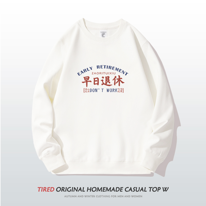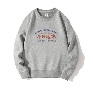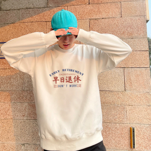 早日退休圆领卫衣国潮情侣男女趣味文字打工人长袖 上衣服潮青少年