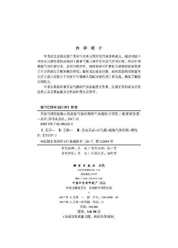 供从事页岩气勘探开发 页岩气储层液态火药高能气体压裂增产关键技术书陈军斌油页岩油气藏高能气体压裂研究 地书籍KX 书