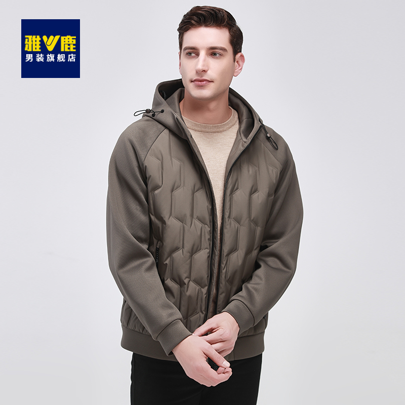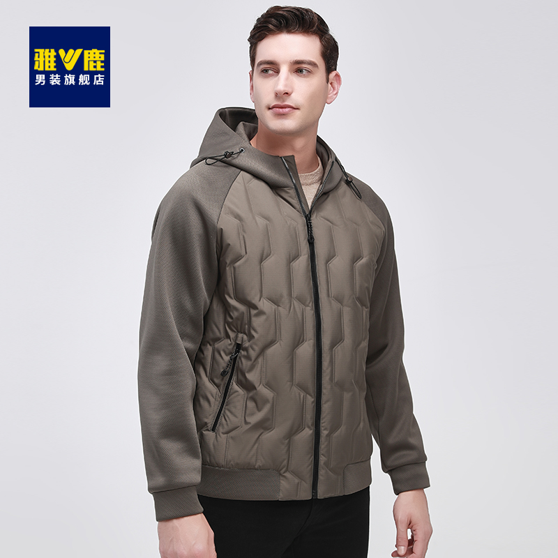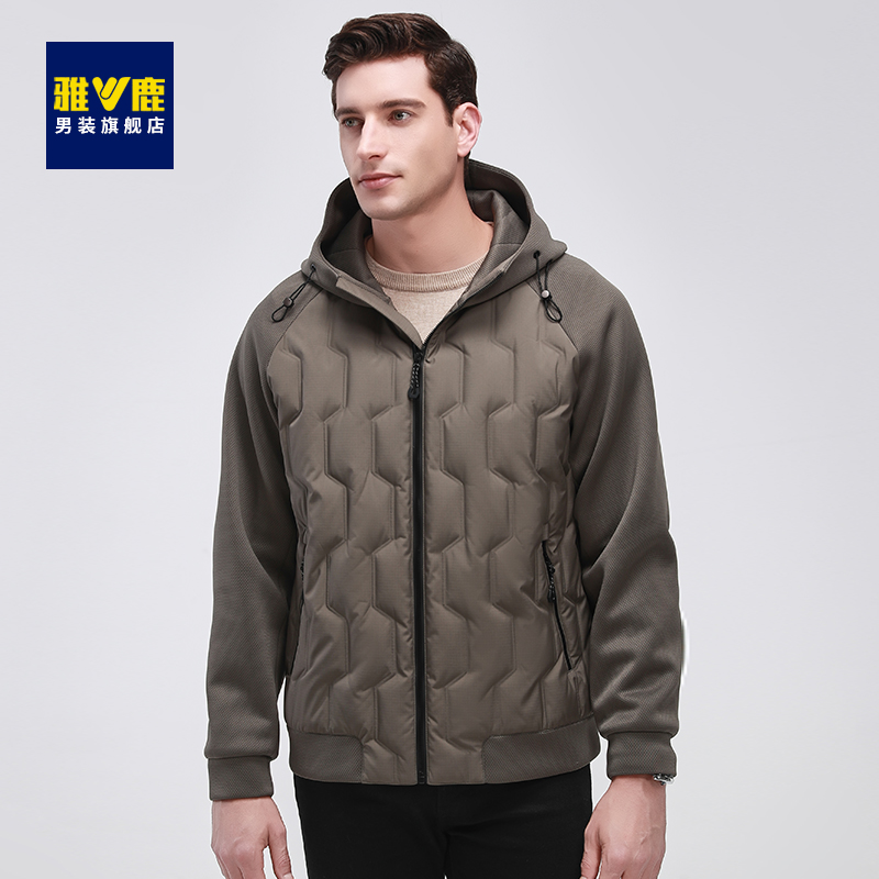 雅鹿轻薄鹅绒羽绒服男短款 轻奢轻便保暖外套 连帽商务休闲中年男士