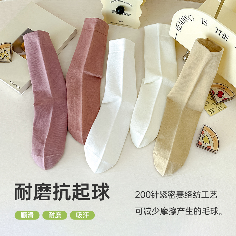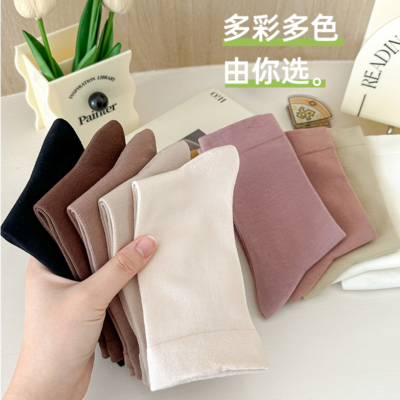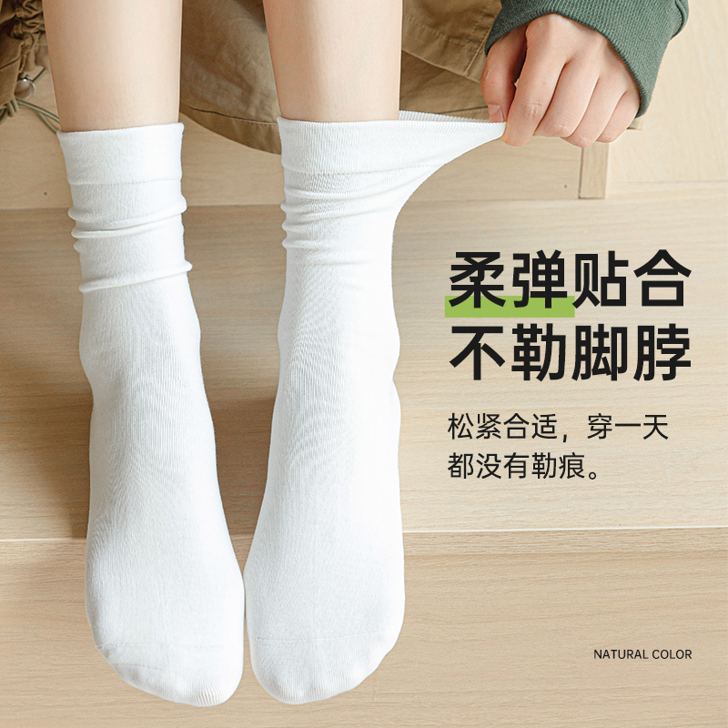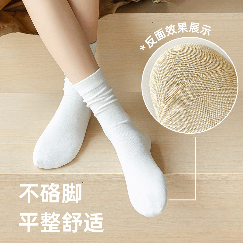 袜子女白色春秋中筒袜纯色棉袜防臭堆堆袜搭配小皮鞋 无骨月子长袜