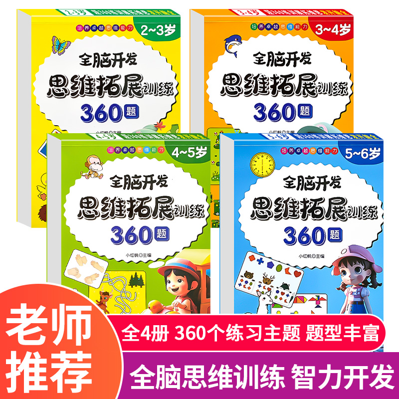 幼儿数学逻辑思维训练360题2 3到6岁宝宝全脑开发专注力益智儿童黄金期左右脑大开发幼儿园中班大班幼小衔接一日一练加减法练习册