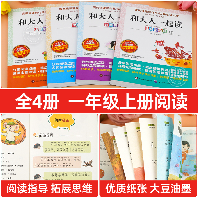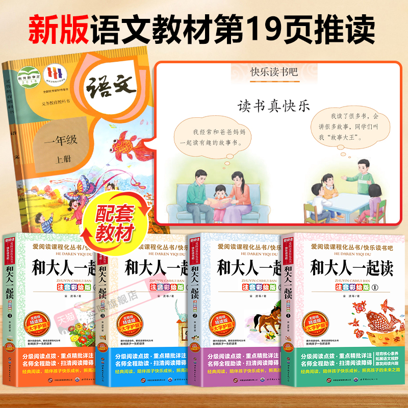 带拼音书籍下册读读童谣和儿歌导读单版 全套4册 快乐读书吧上下学期老师推荐 书目注音版 和大人一起读一年级上册阅读课外书必读正版