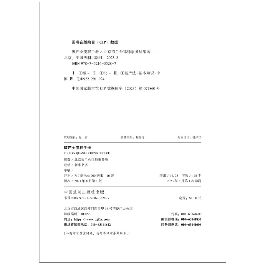 疑难问题 实操建议 社 破产全流程手册 9787521635287 中国法制出版 热点案件 编著 全新正版 北京市兰台律师事务所