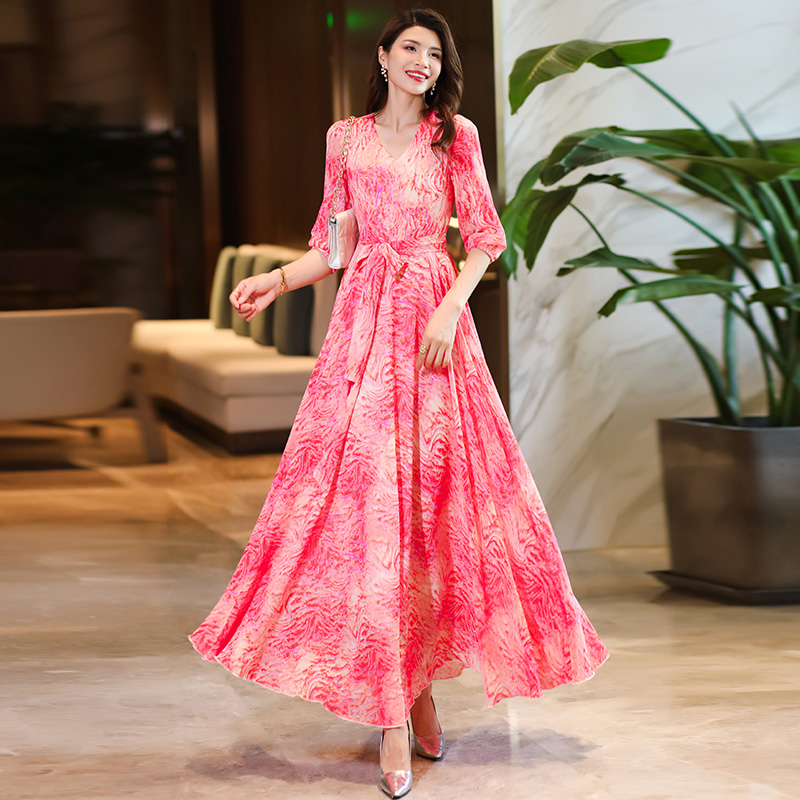 高端婚宴礼服真丝丝绒连衣裙女喜婆婆桑蚕丝裙子收腰妈妈气质秋冬