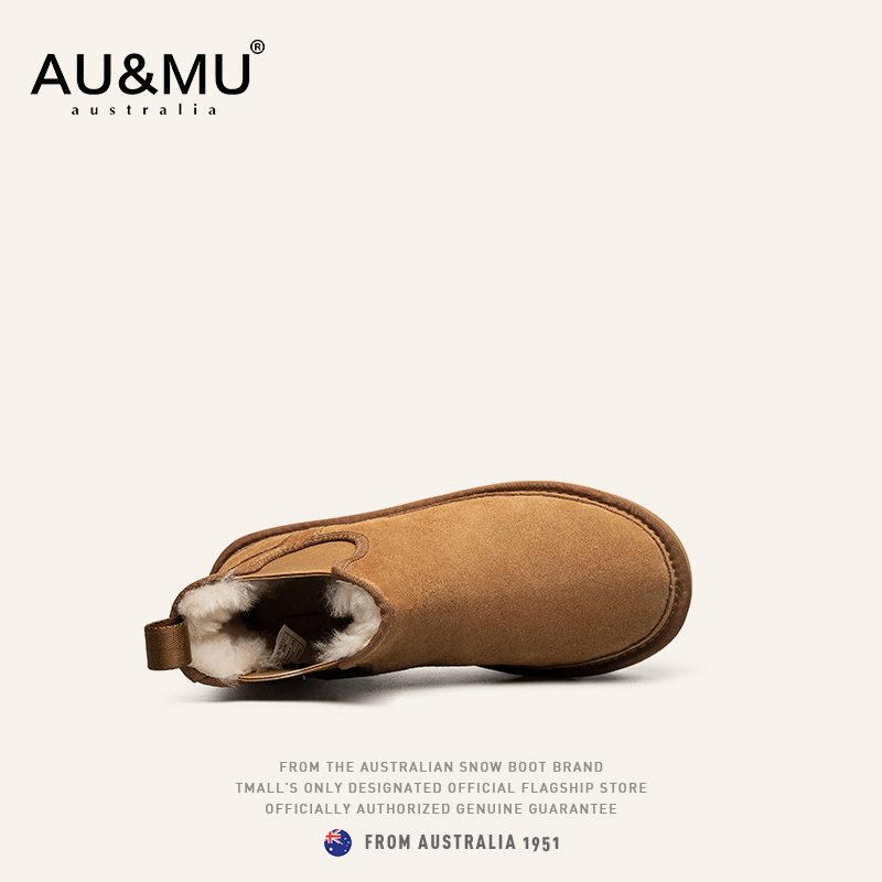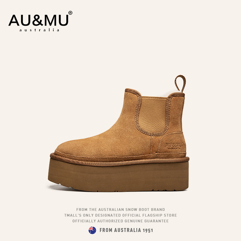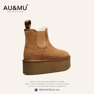 冬季 2025新款 松糕内增高加绒女 羊皮毛一体鞋 AUMU厚底短筒雪地靴