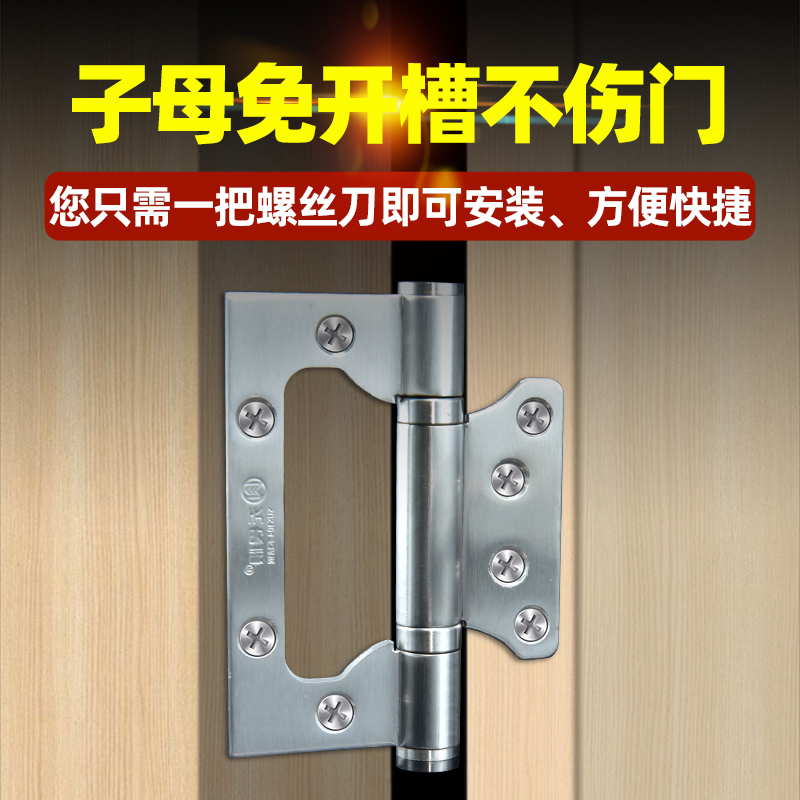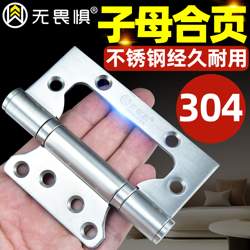 无畏惧4寸加厚304不锈钢子母合页免开槽孔轴承房木门活页合叶铰链