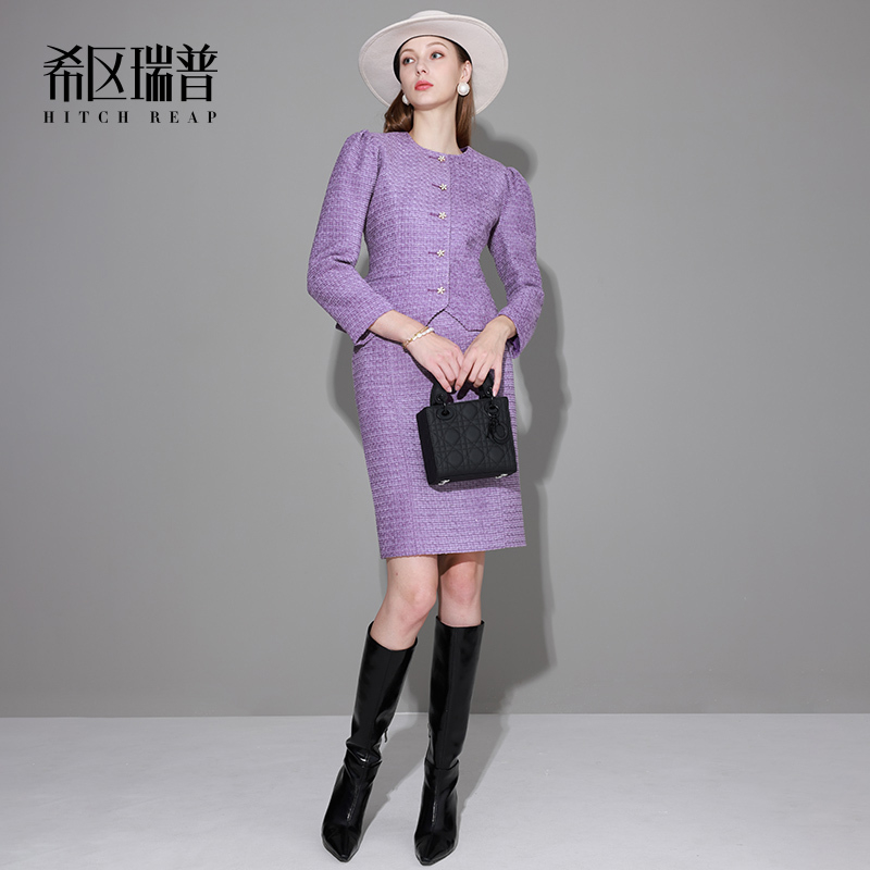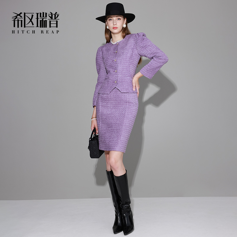 初春小香风时尚 新款 圆领编织女两件套 气质粗花套装 希区瑞普法式