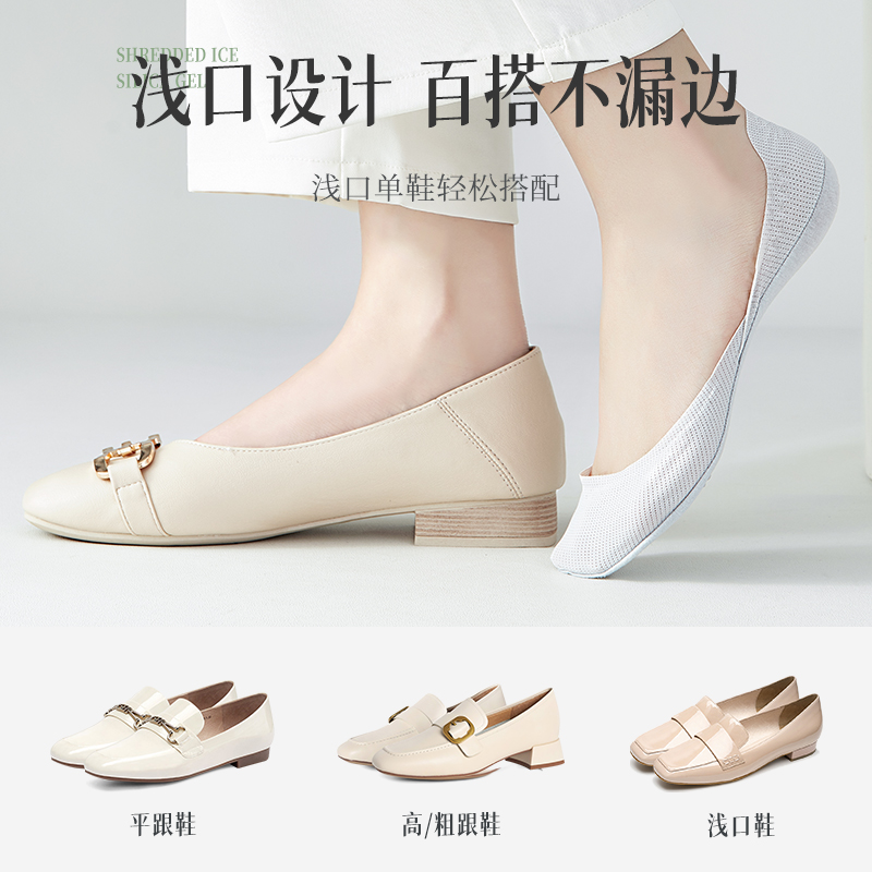 隐形袜 薄款 船袜女士防滑不掉跟侧边浅口冰丝袜子网眼高跟鞋 袜夏季