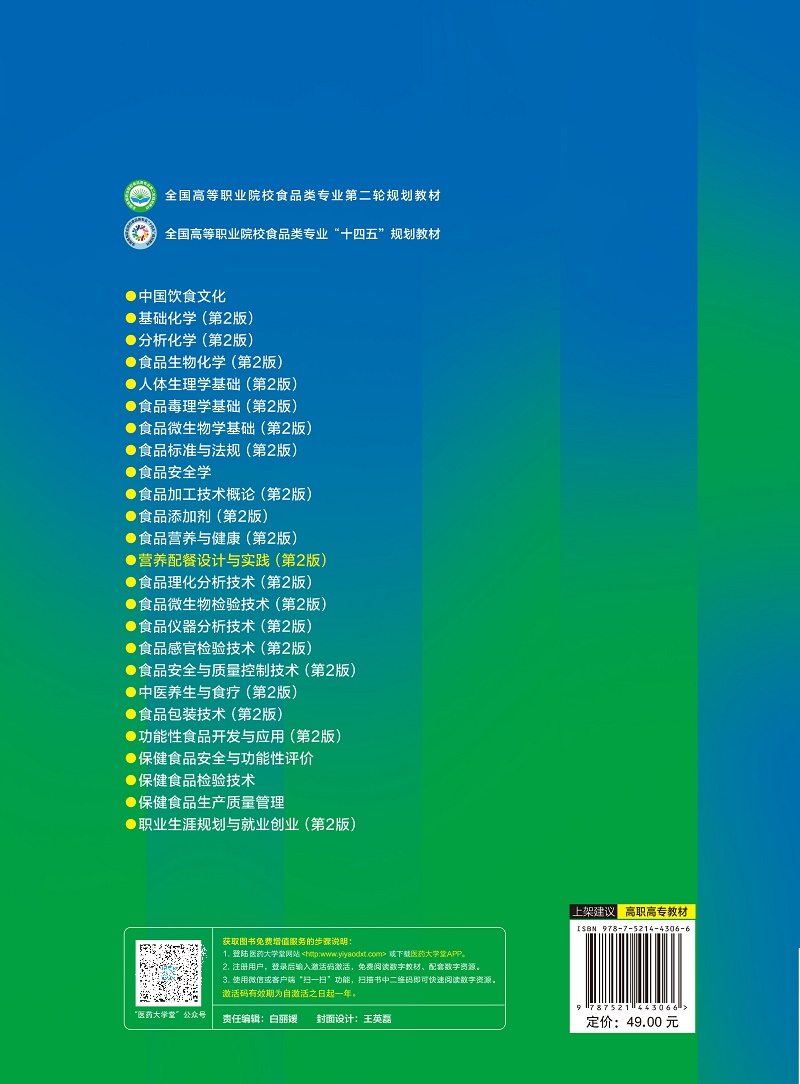 社 中国医药科技出版 张迅捷等主编 供食品营养与健康 食品质量与安全专业用 营养配餐设计与实践 食品检验检测技术 版