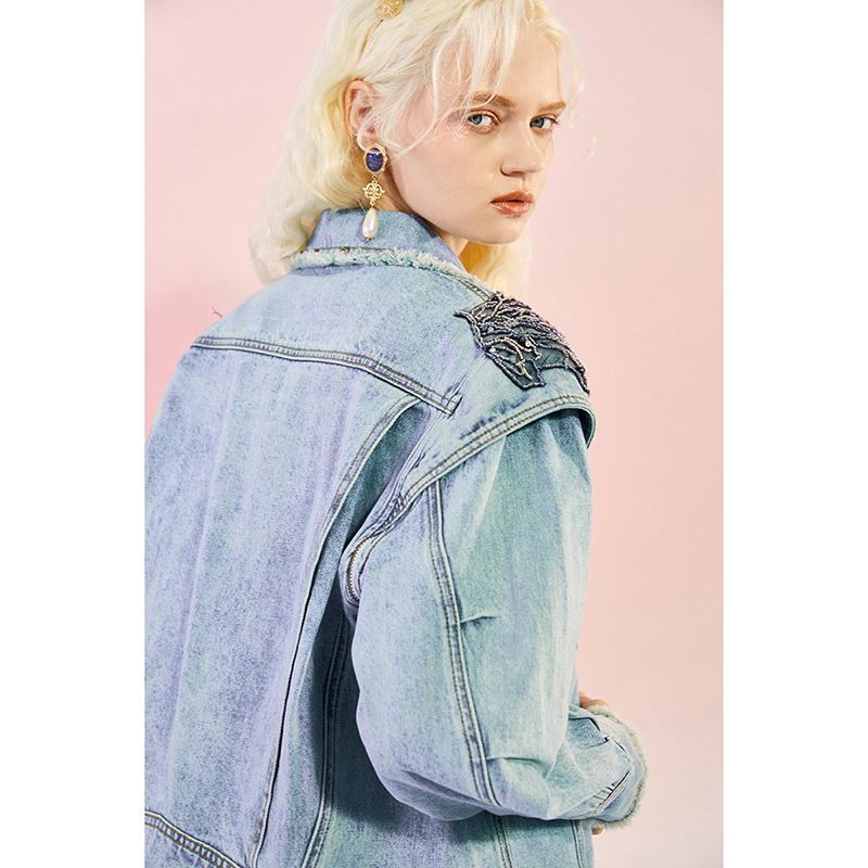 Lilbetter原牛短宽版 外套 哥萨克牛仔夹克2025秋明线设计翻领工装