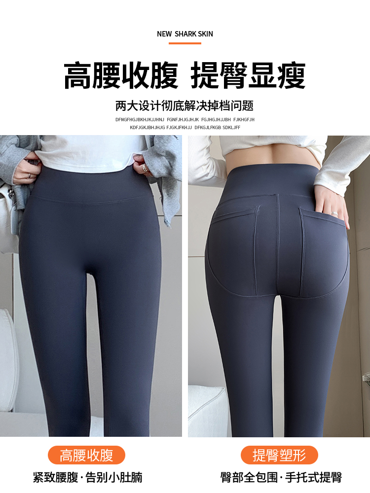 春秋冬收腹提臀后口袋瑜伽健身裤 无尴尬线鲨鱼裤 女外穿2025新款