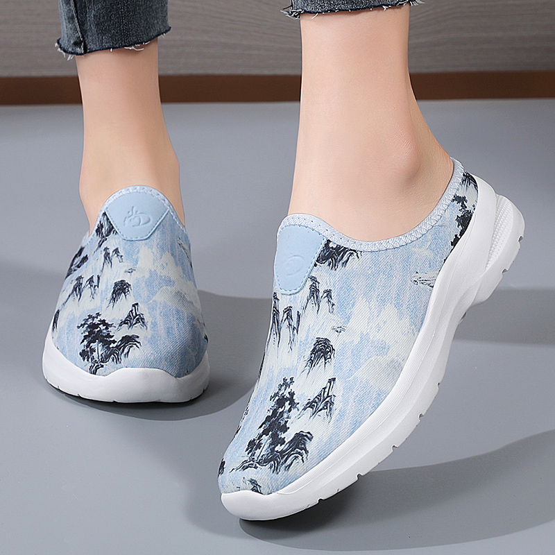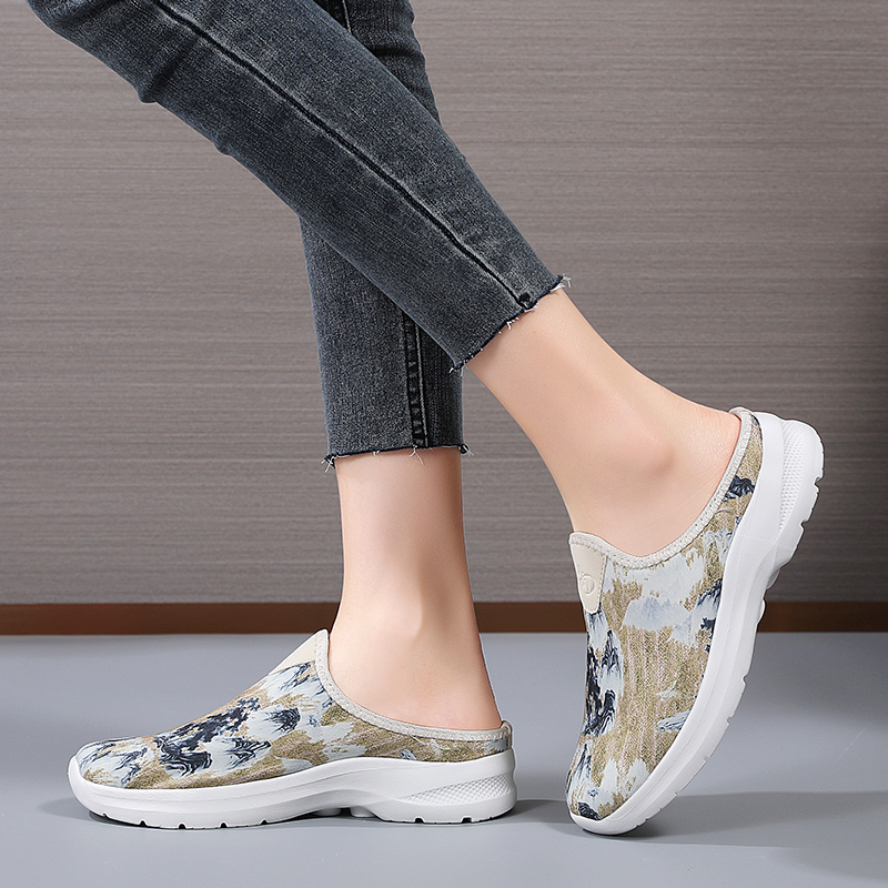 懒人鞋 老北京布鞋 一脚蹬软底防滑妈妈鞋 外穿休闲包头半拖鞋 女春季
