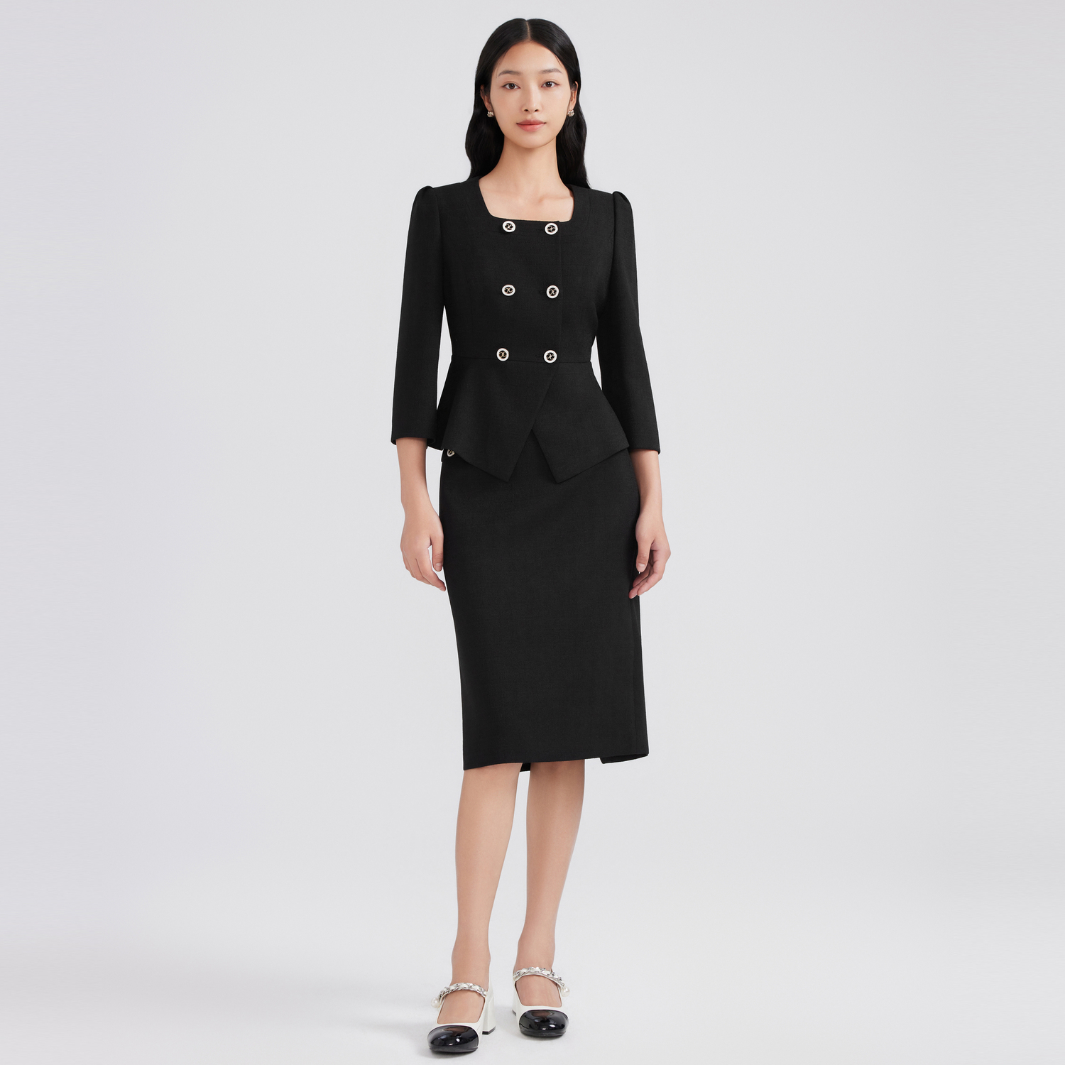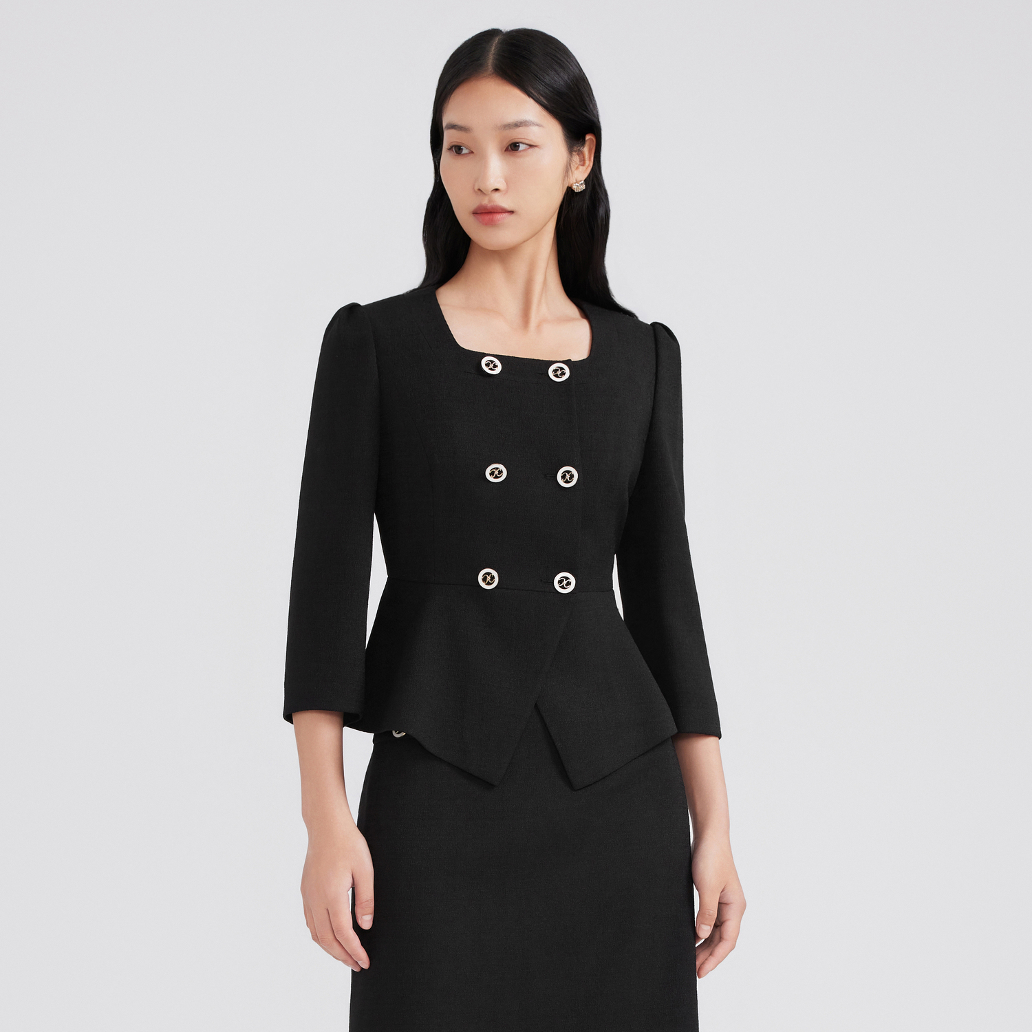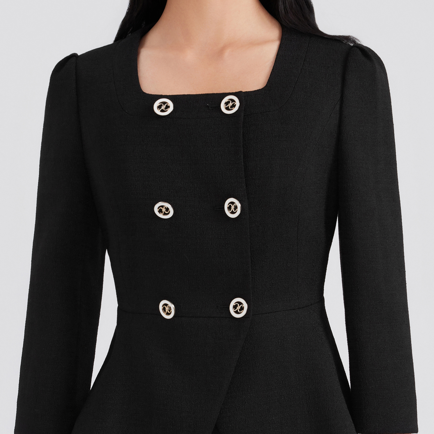 莱茵小香风时尚 黑色女外套 收腰显瘦短截上衣经典