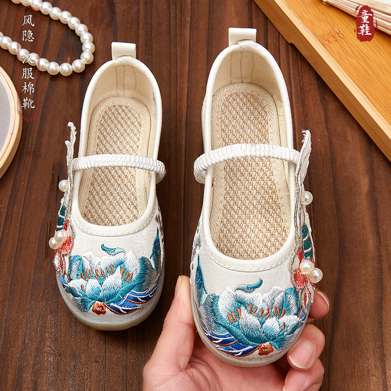 中国风绣花鞋 汉服鞋 古风古装 配格格服老北京布鞋 女童2025春秋新款