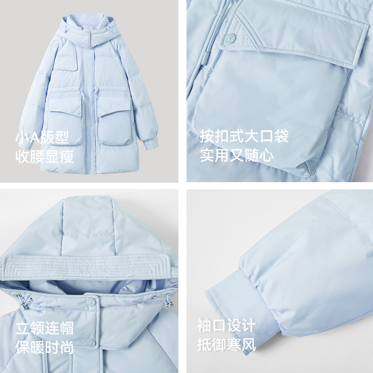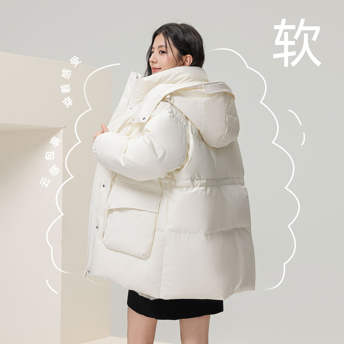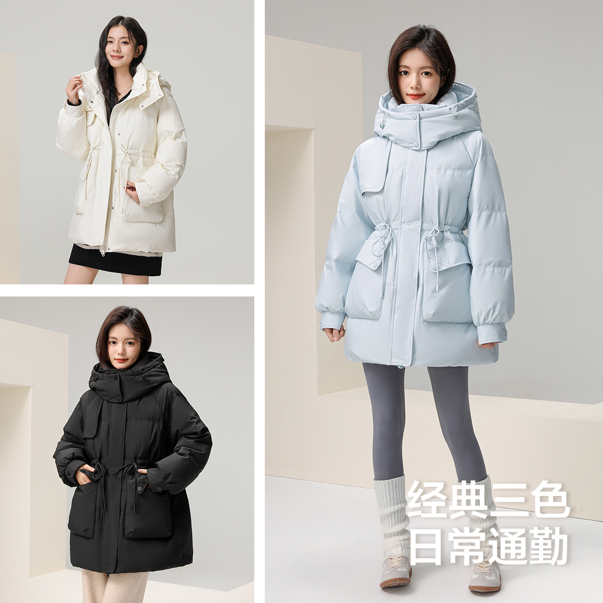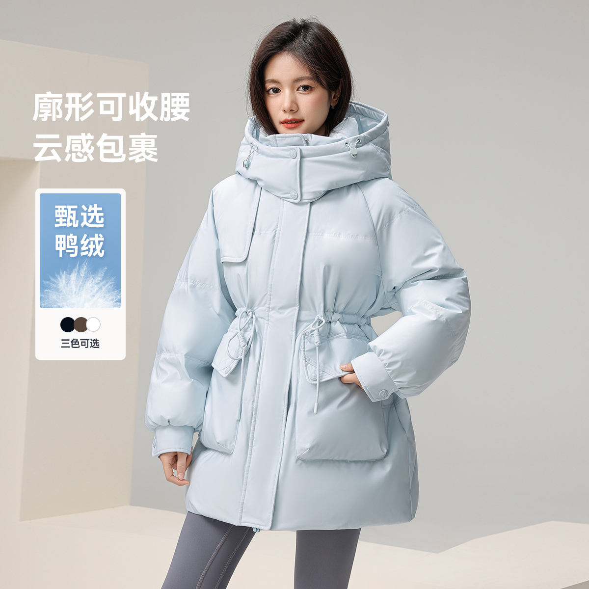 雪中飞2025冬新款 连帽羽绒服可收腰温柔气质显白保暖 女士短款