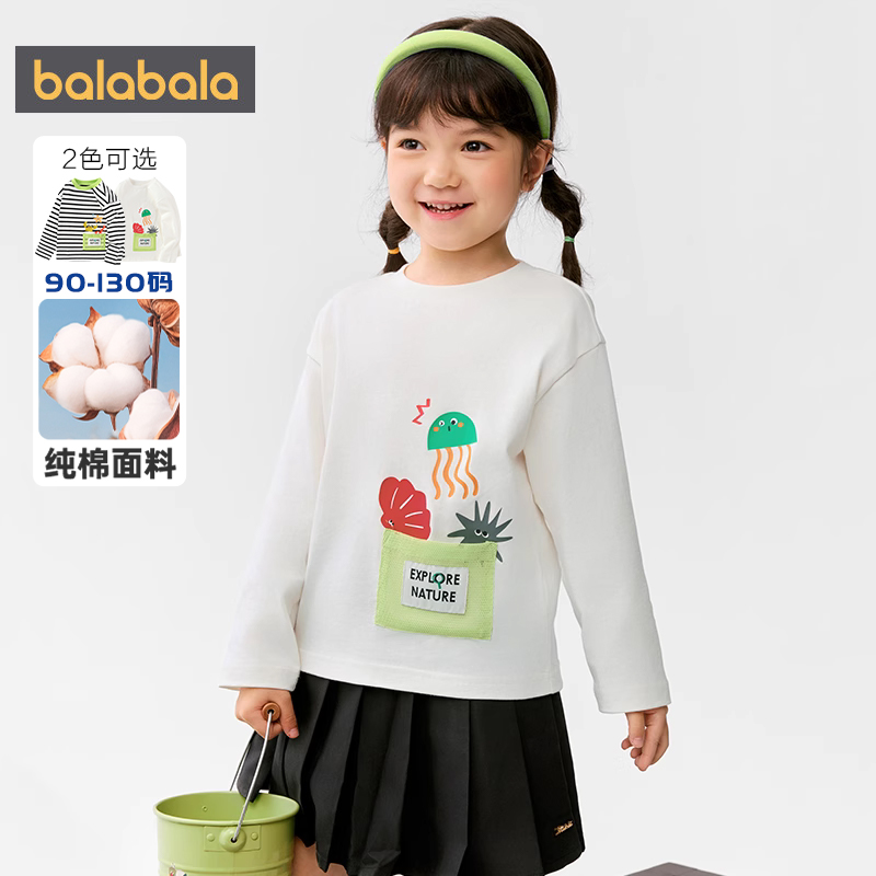 童装 春秋款 男童女童纯棉条纹上衣9 t恤宝宝打底衫 巴拉巴拉儿童长袖