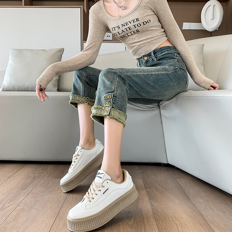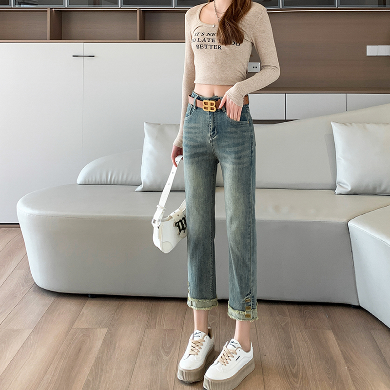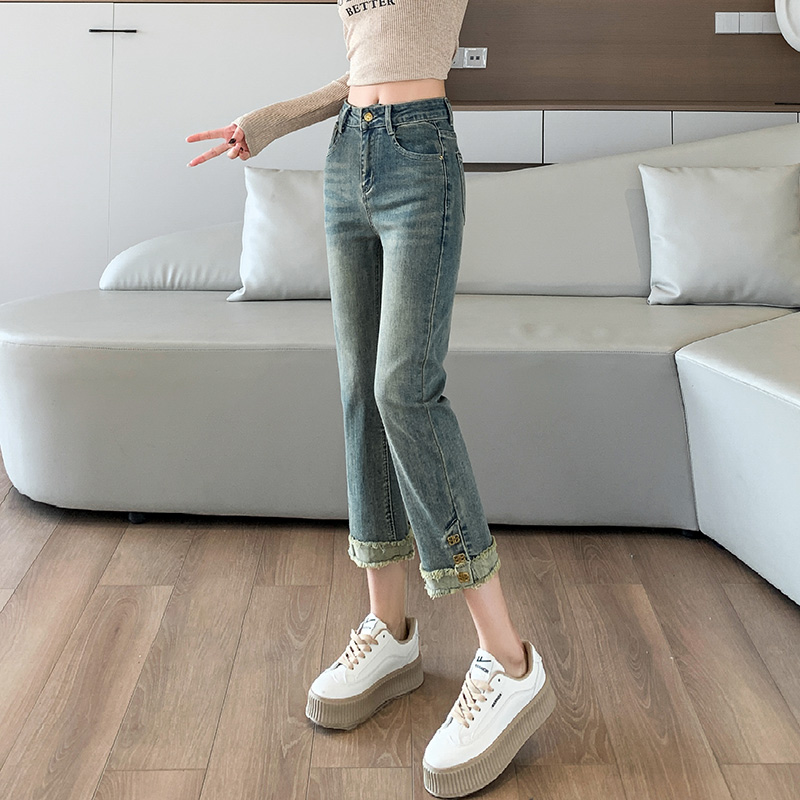 八分直筒小个子烟管裤 高腰显瘦大码 女2025春秋新款 九分排扣牛仔裤