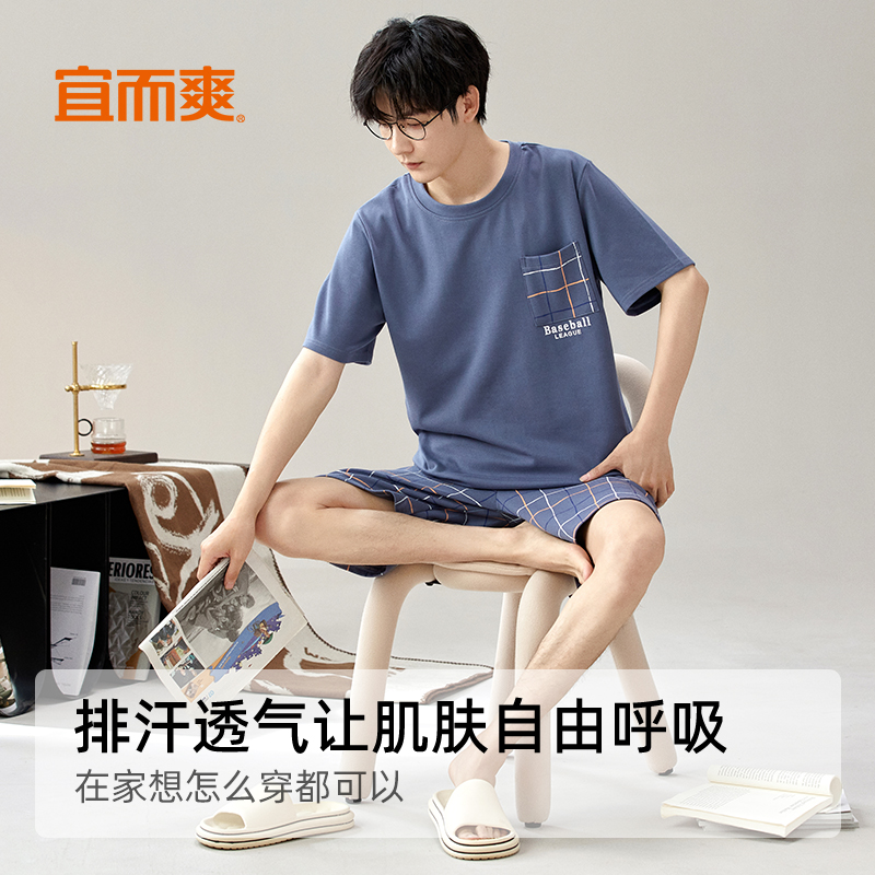 可外穿 睡衣套装 宜而爽纯棉家居服宽松薄款 亲肤舒适男女士情侣款