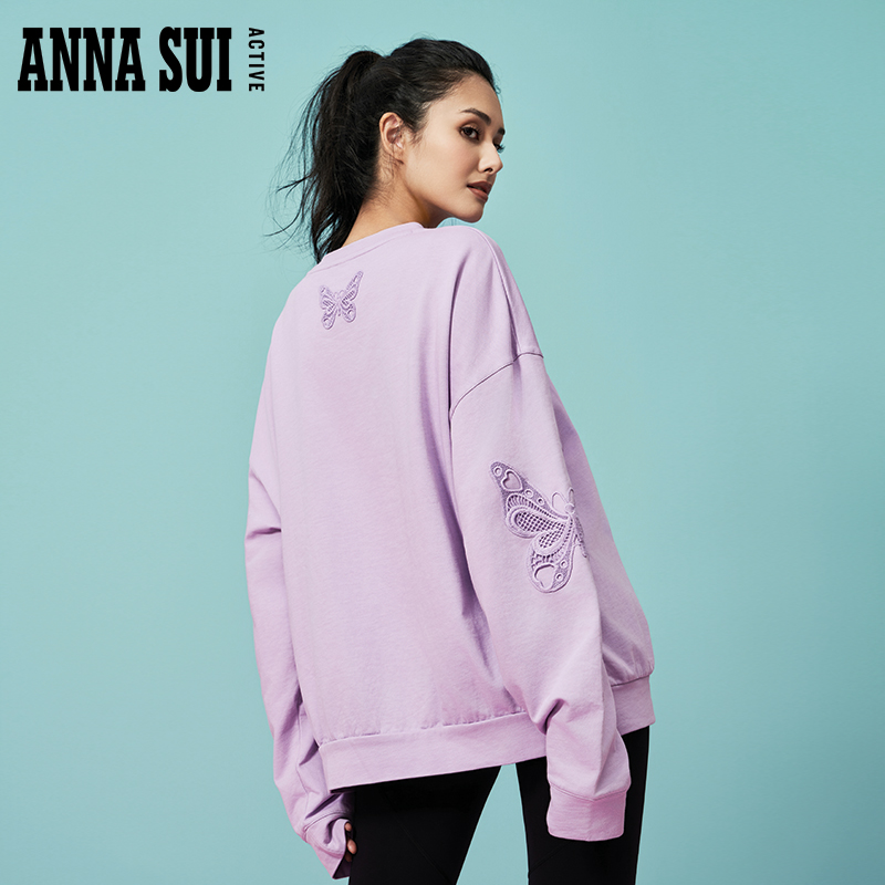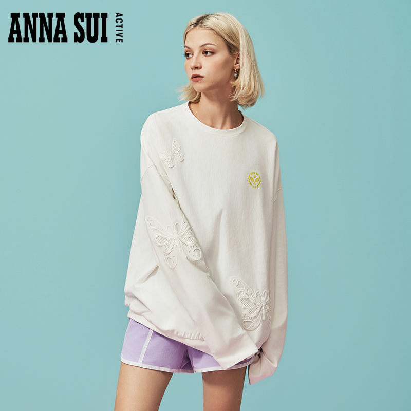 复古蝴蝶蕾丝休闲圆领卫衣t恤女 俱乐部系列 ANNA SUI安娜苏运动