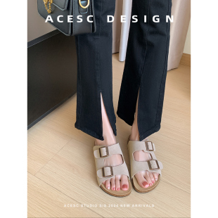 厚底沙滩博肯半拖鞋 真皮软木拖鞋 新款 2024夏季 百搭休闲 女勃肯鞋