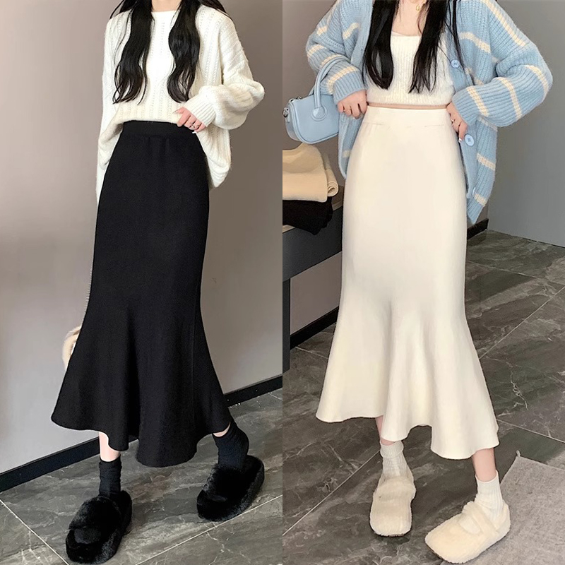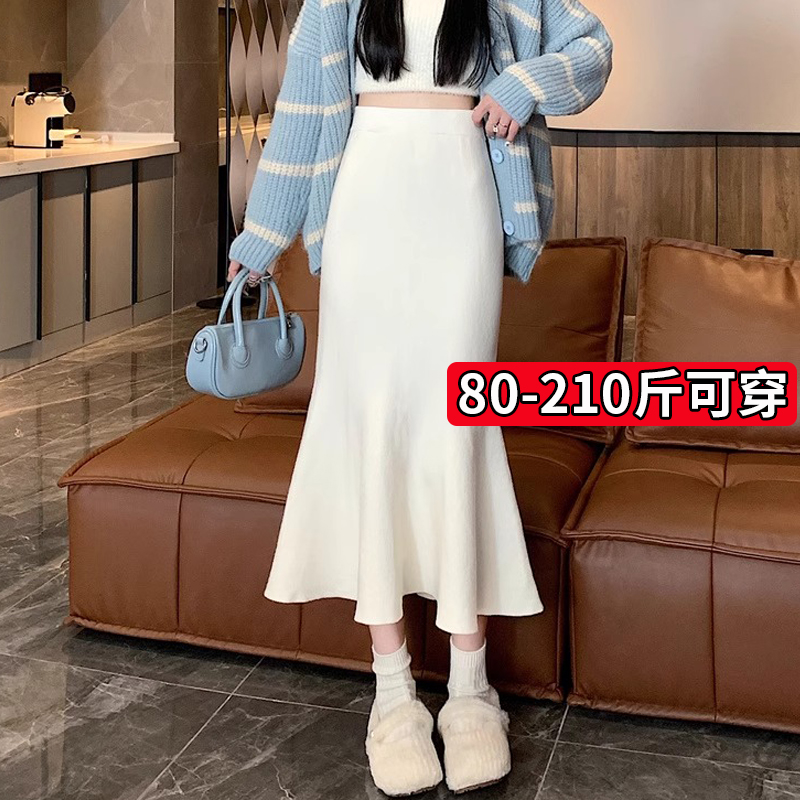 包臀裙半身裙高级感超好看半裙 中长款 大码 胖mm针织鱼尾裙女秋冬款