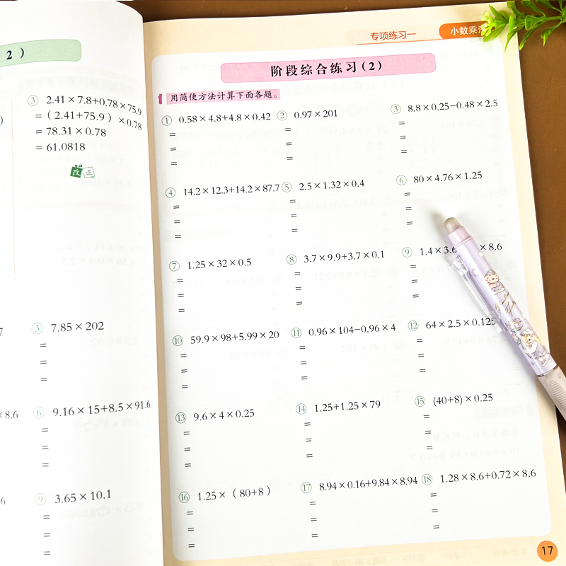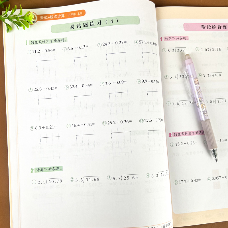上下册口算题天天练口算题卡小学5年级数学专项训练应用题教材同步练习册易错题集合思维训练 计算题强化训练人教版 五年级竖式 脱式
