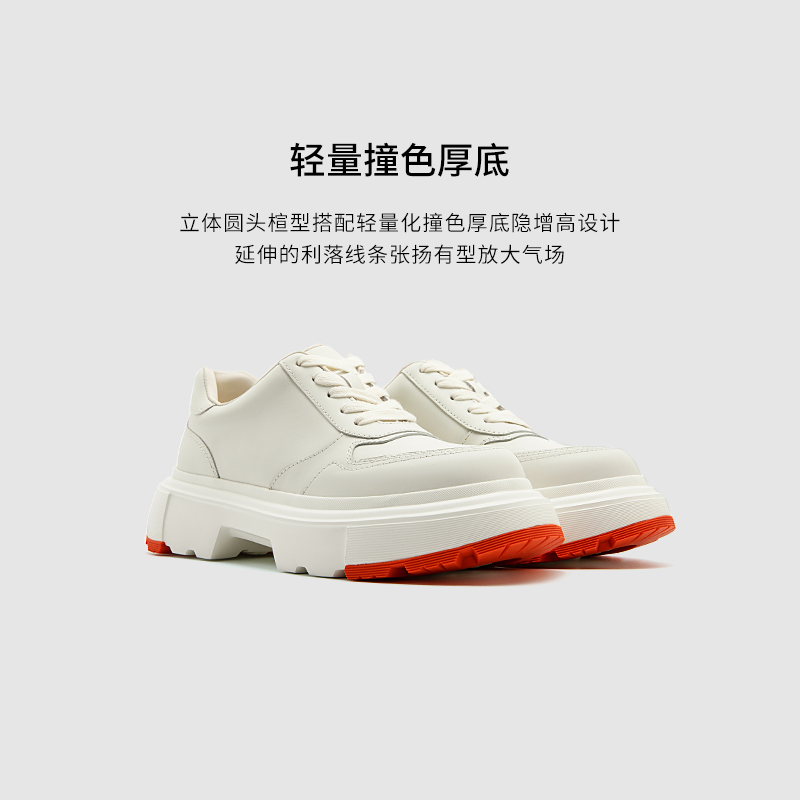 撞色厚底女士休闲鞋 皮尔卡丹25女鞋 真皮哑光 Cardin Pierre